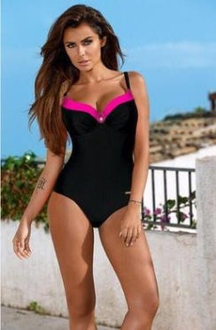 new one-piece swimsuit solid color steel support gathered slim one-piece swimsuit